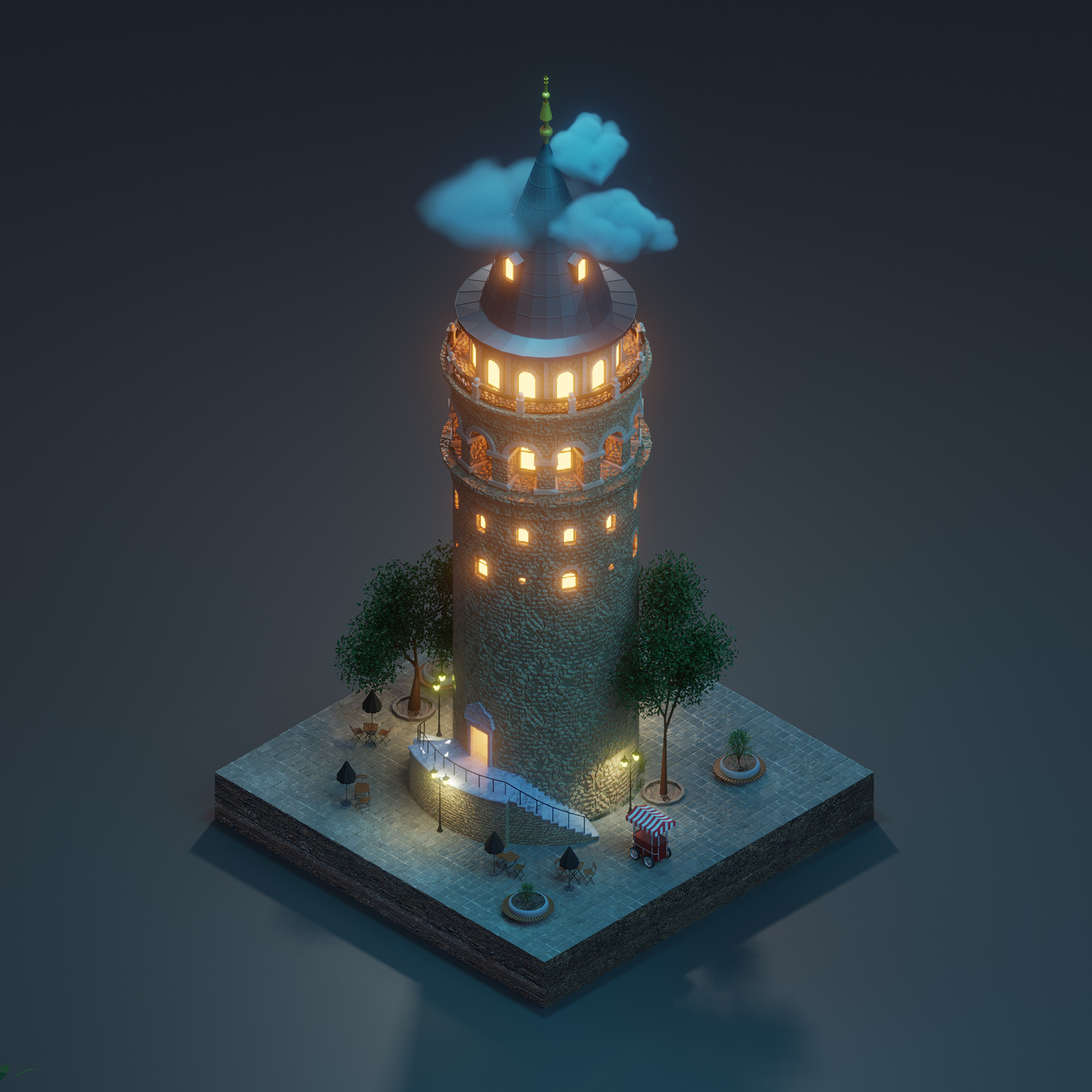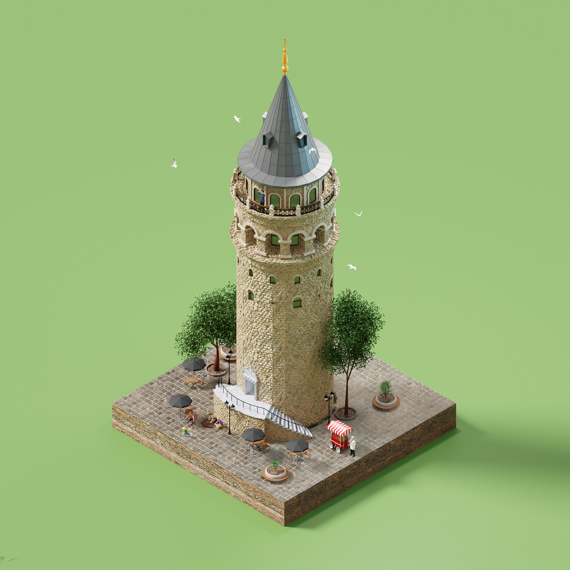 3D ISOMETRIC ILLUSTRATION - GALATA TOWER